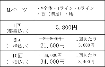 肩・背中・うなじのシェービングがご自信では困難な方はお気軽にご相談ください。脱毛は税込料金です